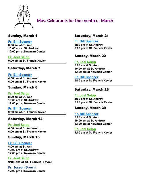 6:00 p.m. on Friday at St. Andrew. Additionally, Adoration will also take place for
